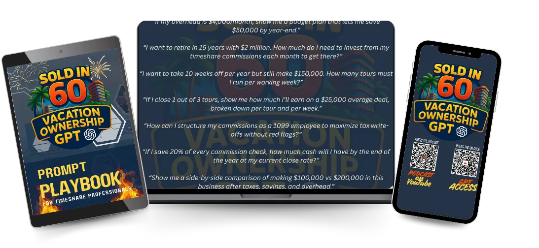 This is built for timeshare reps, closers, and team leaders who want to level up their sales, mindset, and closing ratios. Whether you’re brand new or a seasoned veteran, Sold in 60 Coach meets you where you are — and gets you to your next level..