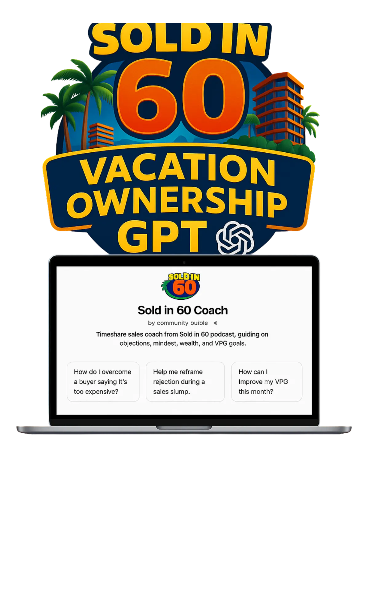It’s an AI-powered timeshare sales coach trained on the Sold in 60 podcast philosophy. It gives you live objection handling, motivational mindset tools, and brand-specific ownership planning for Sheraton, Marriott Vacation Club, and Westgate Resorts — all in under a minute.